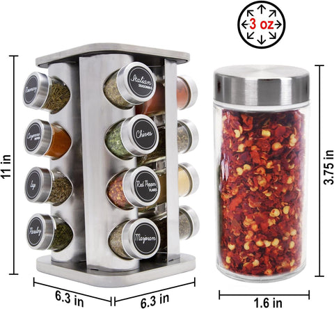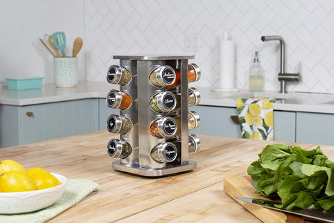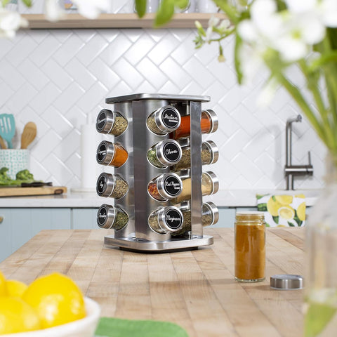 Un elemento esencial para la cocina, ya sea para tu primer hogar o un regalo de registro de boda, el organizador de especias de 16 tarros es imprescindible.Estante giratorio de 360°, el organizador de especias está diseñado con un chasis giratorio y parte inferior antideslizante, que se puede girar 360 grados sin ninguna resistencia y se puede colocar en la mesa de la cocina de forma constante. Conveniente y rápido para encontrar condimentos y organizar, ahorra tiempo y espacio.Diseño compacto, su diseño compacto y base giratoria añaden practicidad al estilo para el mejor juego de especias para su hogar o apartamento.Alta calidad, hecho de acero inoxidable genuino de primera calidad, este estante mantendrá su buen aspecto durante mucho tiempo. El acero inoxidable de alta calidad complementa los modernos electrodomésticos de cocina.Elegante y funcional, tarros de vidrio transparente con tapas de tamizar/verter y proporcionar facilidad de identificación y visibilidad.