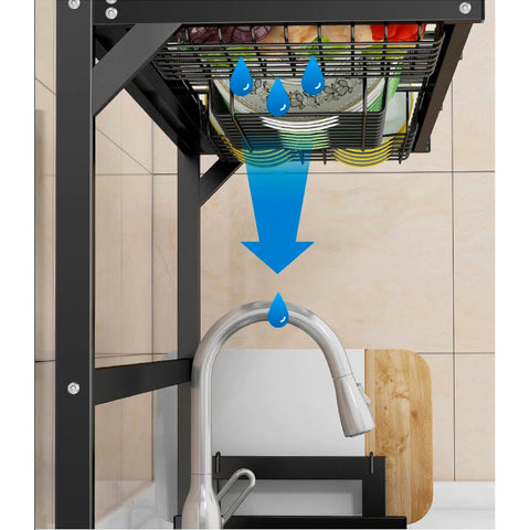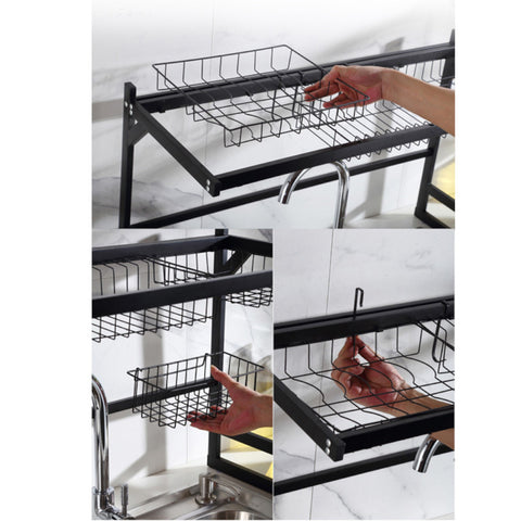 Bienvenidos a Tienda QcarachitosVenimos a Traerte gran variedad en artículos para encantar tu día.#LoQuieroLoEncuentroEnQcarachitosCon este organizador y escurridor de platos, ya no tendrás que pasar horas secando a mano la vajilla gracias a su práctico sistema de goteo.Además, es 2 en 1 gracias a sus compartimentos, podrás almacenar tus utensilios de cocina como cuchillos, tablas de picar, cubiertos y más. Tiene estantes para que coloques detergentes y pequeños artículos de limpieza.Su elegante diseño te permitirá ahorrar espacio y tiempo, manteniendo el orden en tu cocina en todo momento. Hecho de material de alta calidad, lo suficientemente resistente para el uso diario en el hogar, sin oxidarse ni deformarse fácilmente. Es sencillo de armar y de limpiar.Especificaciones:– Material: Acero al carbono. – Color: Negro. -Incluye ventosas antideslizantes. -Tamaño:52 x 32 x 65cm. -Requiere armado.1 Mes de garantía por defectos de fábricaTienda QcarachitosArtículos para encantar tu día.Ventas al mayor y al detal ofreciendo una gran variedad en productos de alta calidad para tu mayor seguridad, escríbenos y recibe las mejores ofertas